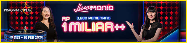 LIVE MANIA Turnamen oleh Pragmatic Play akan berlangsung mulai 10 Desember 2025 00:00 WIB hingga 16 Februari 2026 23:59 WIB. Total hadiah turnamen adalah RP 1 Miliar dan akan dibagikan kepada 3.680 pemain teratas yang memiliki skor tertinggi pada papan peringkat.